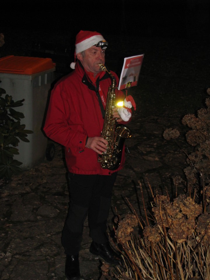 Puis les arrêts se sont succédés devant les maisons illuminées avec à chaque fois un intermède musical offert par Papy Guy.
