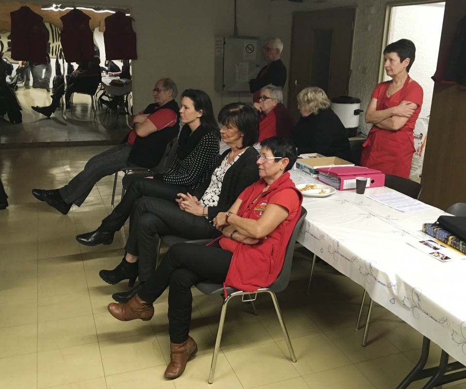 La présidente ouvre la séance vers 20 heures, plus de 80 membres ont répondu présents à notre invitation. Il y a beaucoup de nouveaux membres. Elle nous résume l’année 2016 qui a été marquée notamment par la création du site internet et par l’acquisition de matériel de cuisine et de tentes pour les points de contrôle.