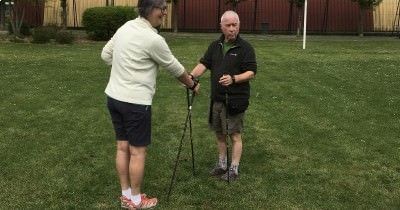 Après la distribution et le réglage des bâtons, direction le stade pour des exercices pratiques, suivis par une marche d'entrainement sur le Chemin de Vie.
