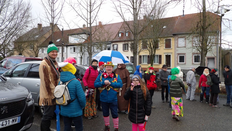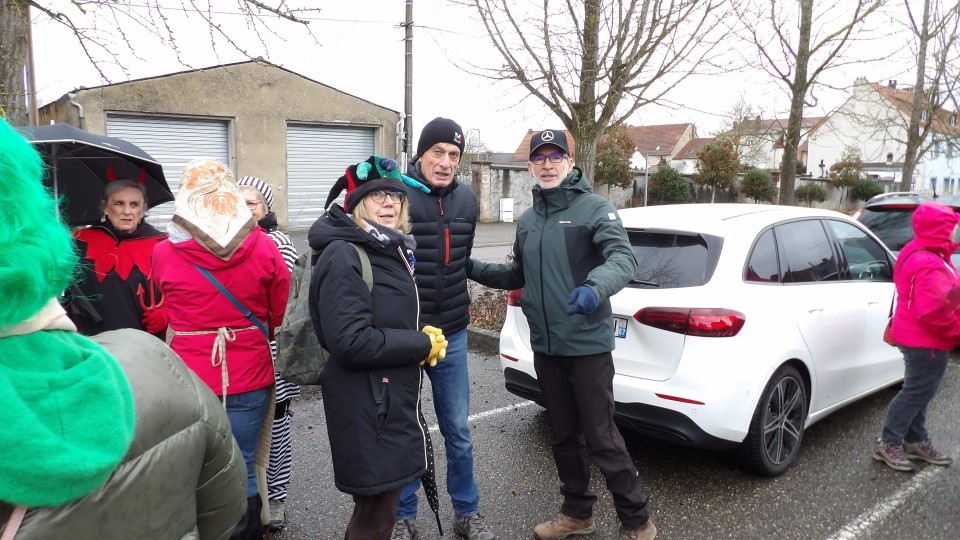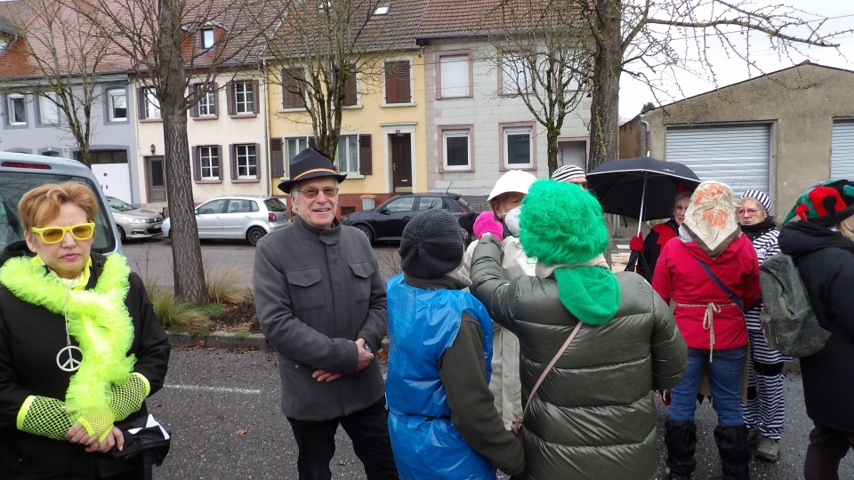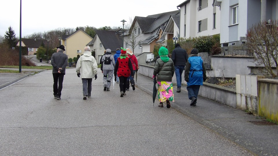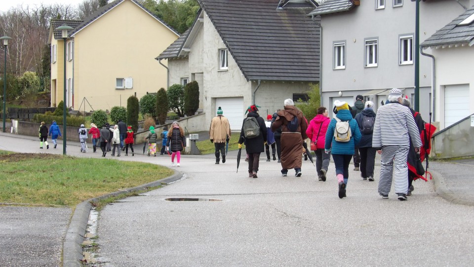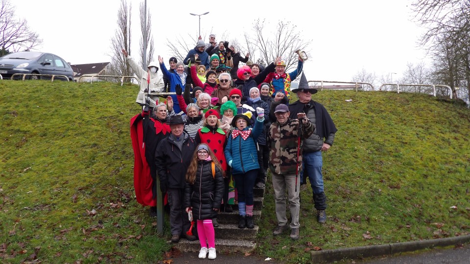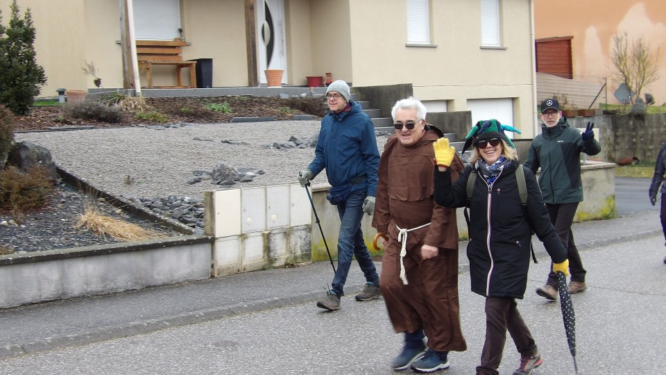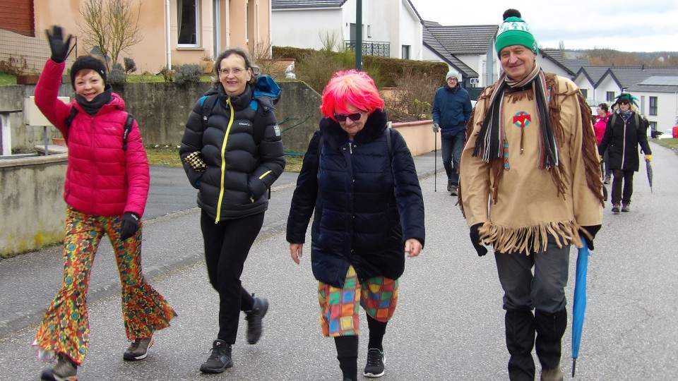 Une soixante de carnavaleux de Namasté avait pris le départ du parking de Welferding pour une marche de 6.7 km guidée par Guy, à travers les quartiers de Welferding.