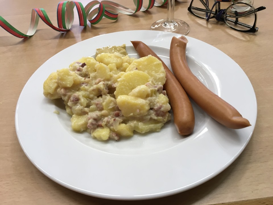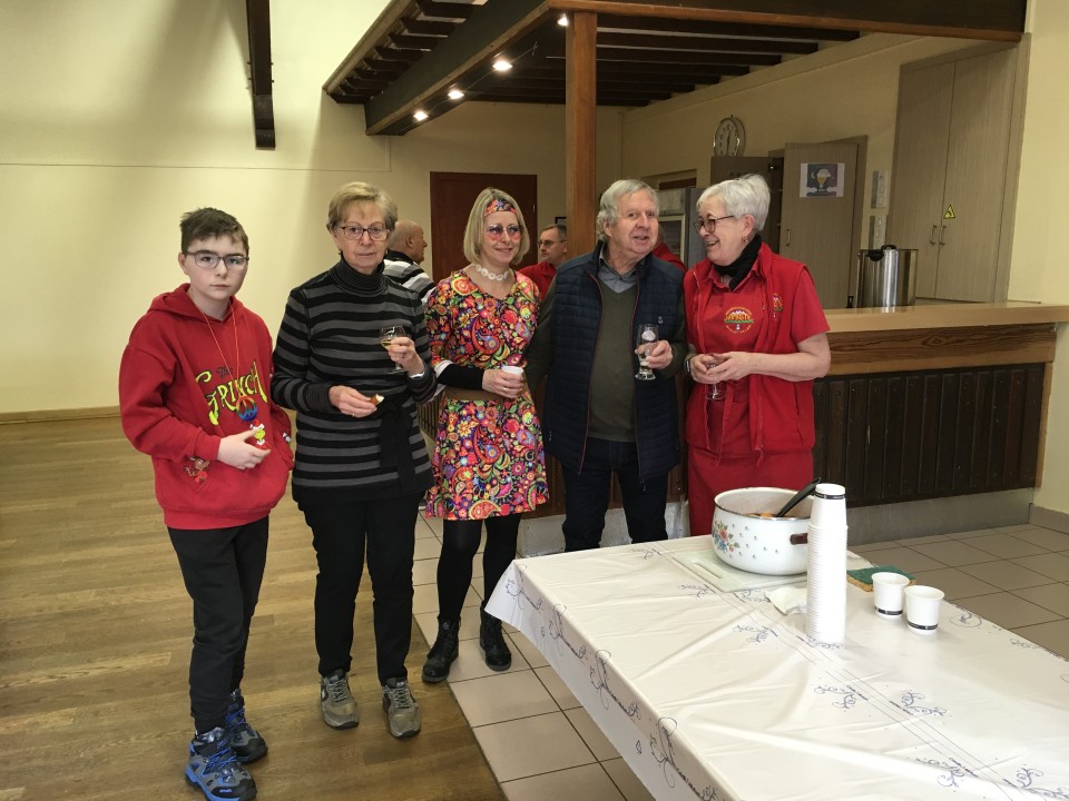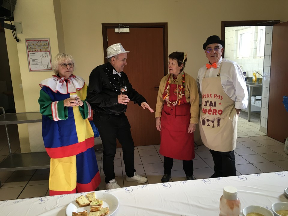 A midi, tout ce beau monde s'est retrouvé à la salle communale de Sarreinsmig pour partager un bon moment de convivialité. Après l'apéro, la salade de pommes de terre accompagnée de viennoises a régalé toute la troupe.